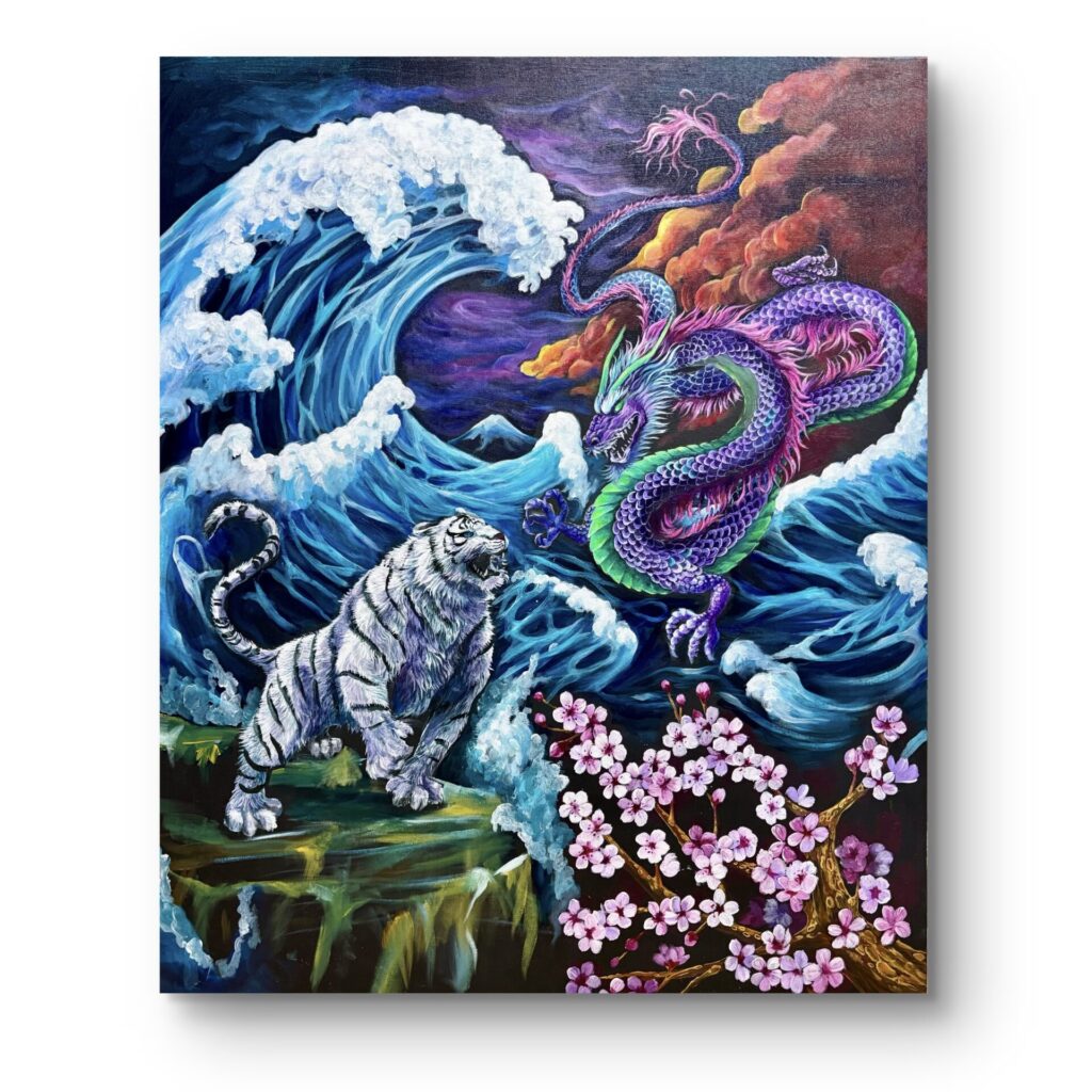 #インテリアアート 原画 #ネオンコズミック #日本画 モチーフ #日本美術 現代 #現代アート 日本 #虎 絵画 #陰陽思想 アート #龍 絵画 #龍と虎 象徴 #龍虎図 意味